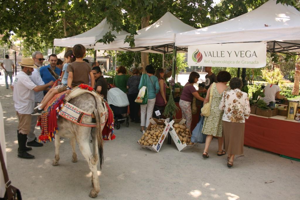 Hoy os mostramos las imágenes de lo ocurrido ayer en el ecomercado de Granada, fue un día muy caluroso, con mucha afluencia de público y muchas actividades:visita del burro andaluz, música en vivo, sorteo de ecocestas, visita institucional, y mucha mucha verdura y fruta ecológica de la mejor calidad, además de productos artesanales de todo tipo.