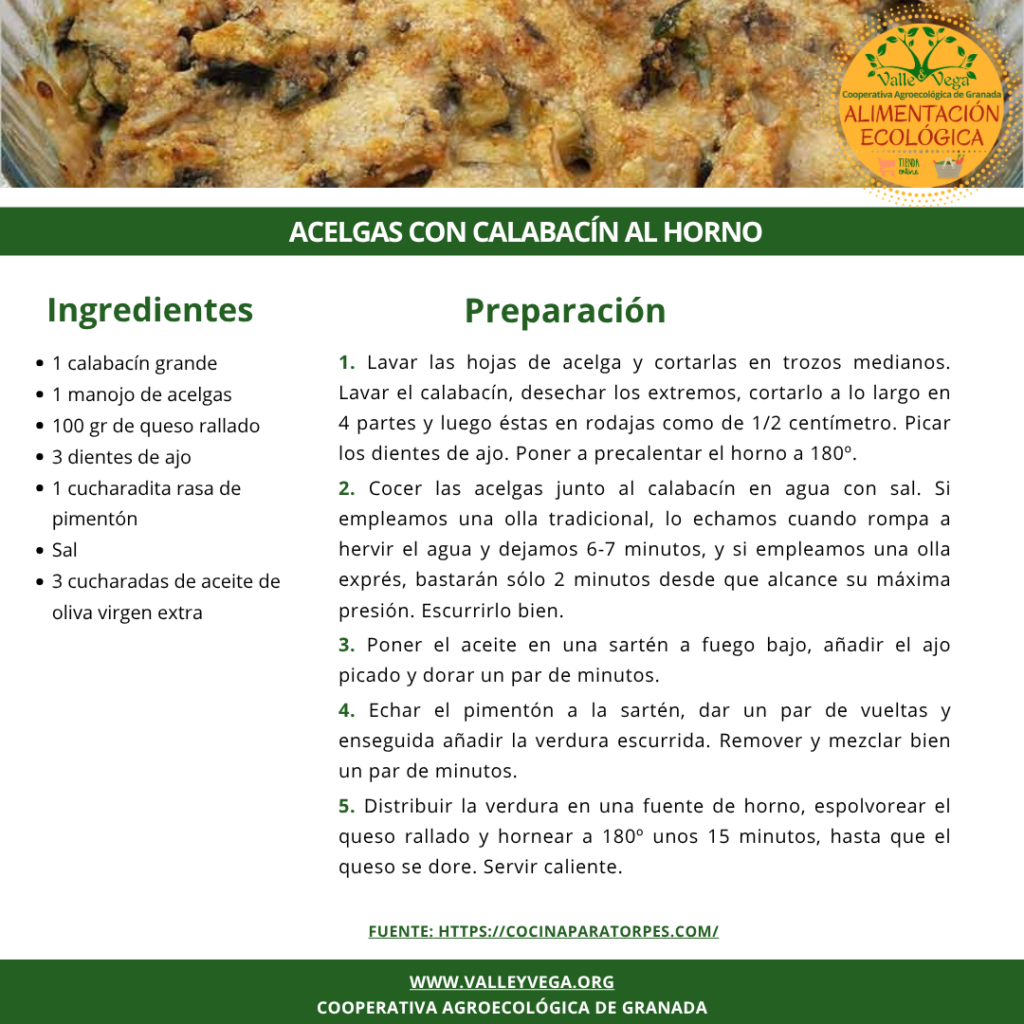 Esta es nuestra propuesta de receta semanal: Acelgas con calabacín al horno