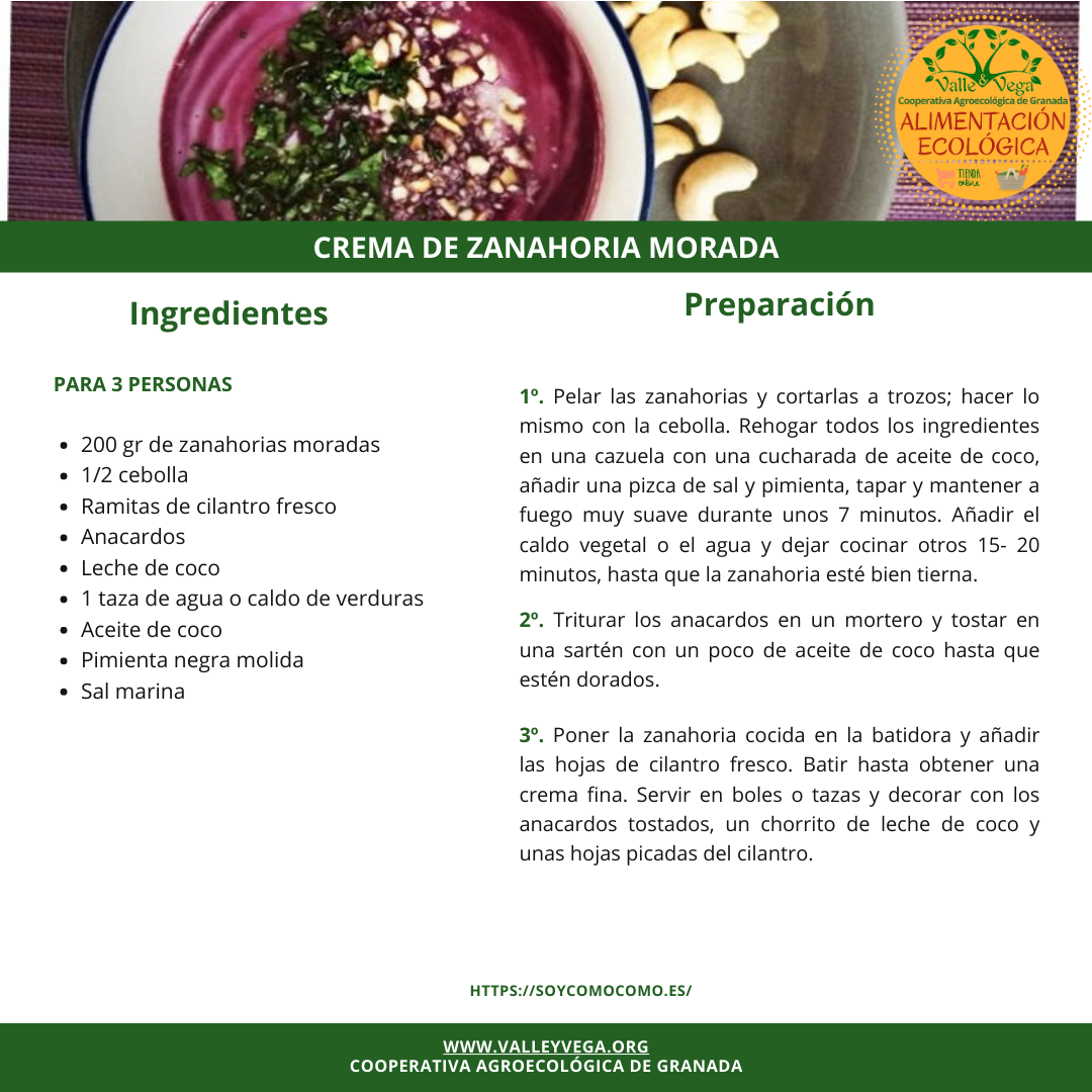 Esta es nuestra propuesta de receta semanal: Crema de zanahoria morada