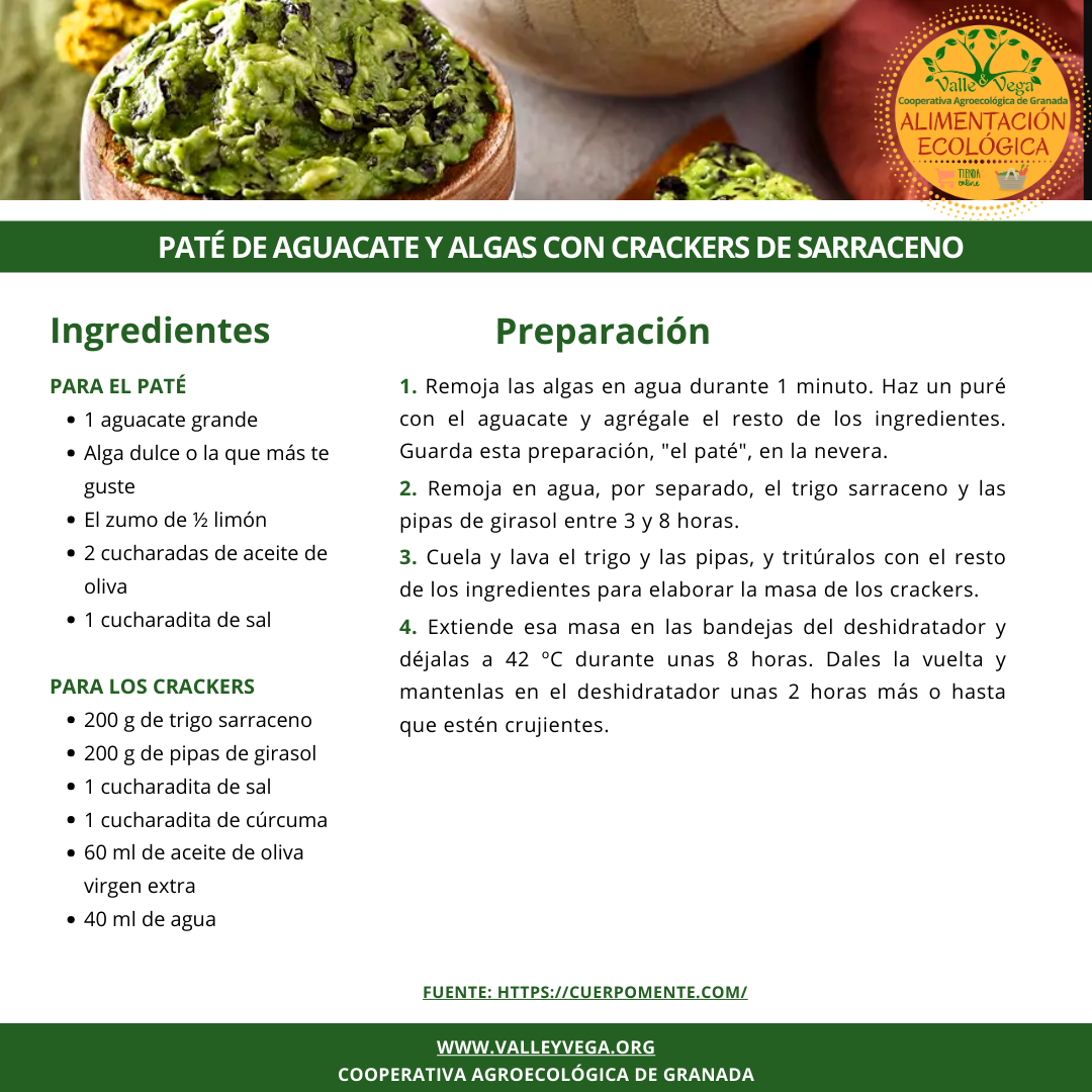 Recetario Valle y Vega. Paté de aguacate y algas con crackers de sarraceno 💚