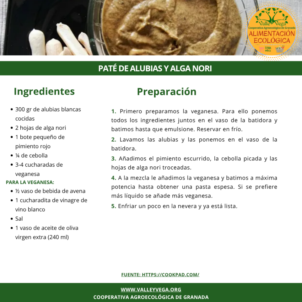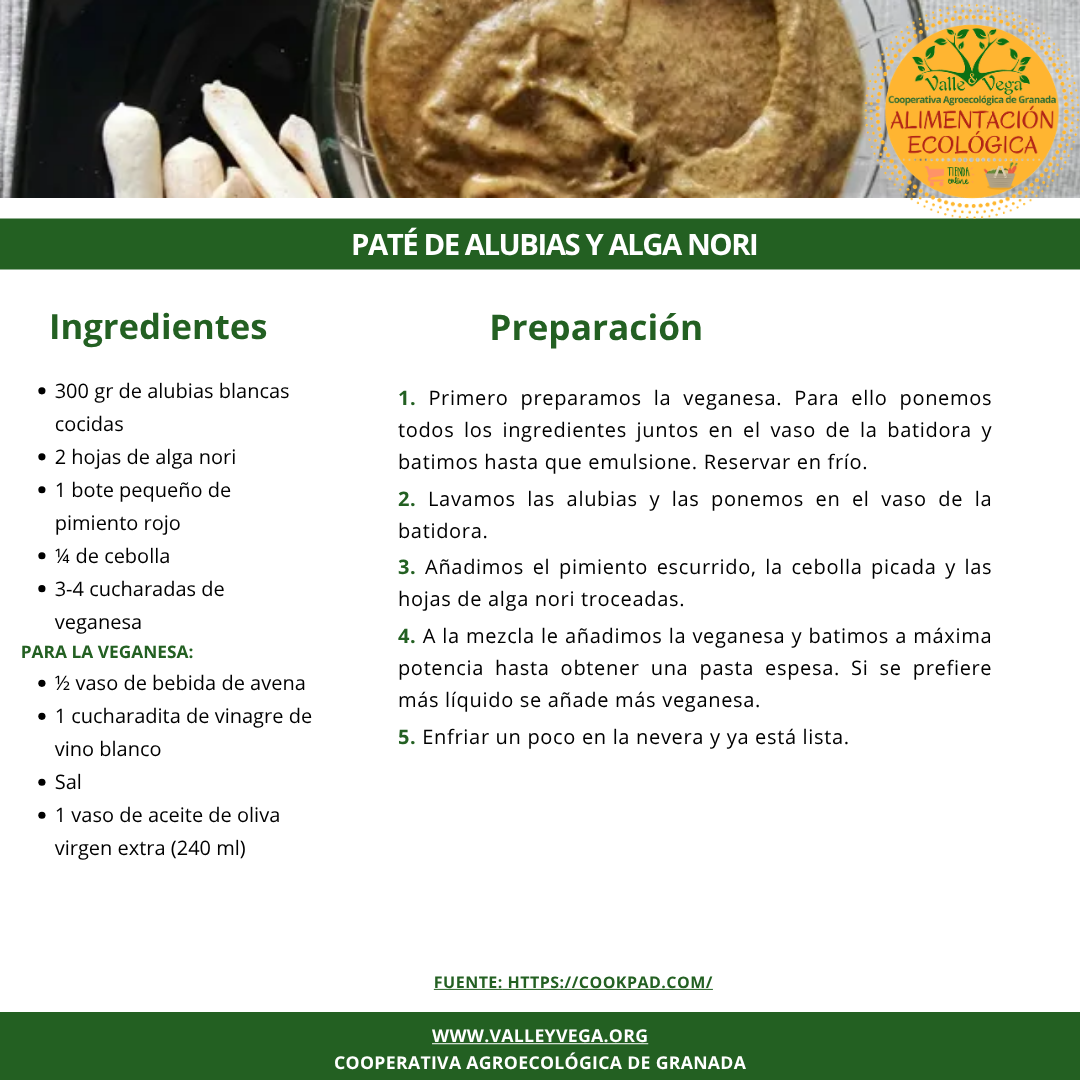 Esta es nuestra propuesta de receta semanal: Paté de alubias y alga Nori